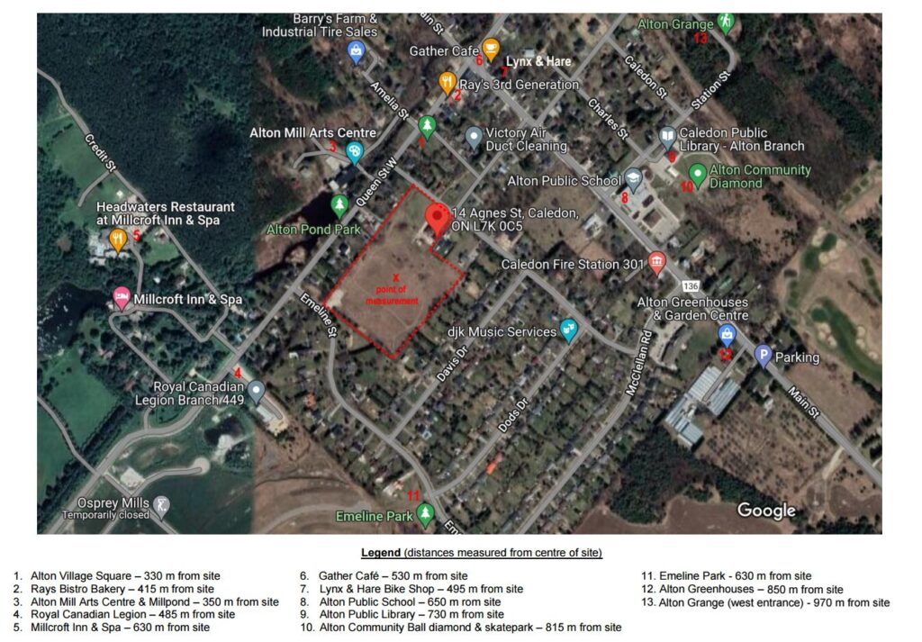 Alton Village Mews is proposed on a 10 acre (4 hectare) property between Agnes and Emeline Streets in the centre of the Village of Alton (Town of Caledon).